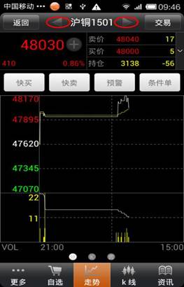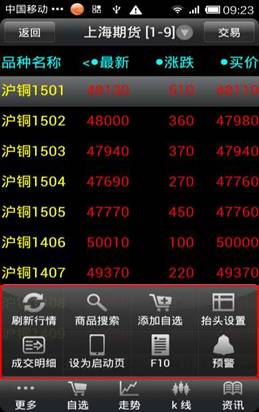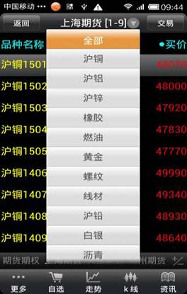 ◇ 商品搜索:點(diǎn)擊“更多”--“商品搜索”,可以快速切換到需要查看的品種信息。