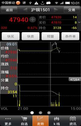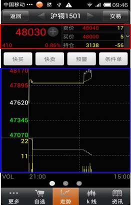 ◇ 快捷操作:在走勢界面可以實(shí)現(xiàn)快買、快賣、設(shè)置預(yù)警/條件單的快捷操作。