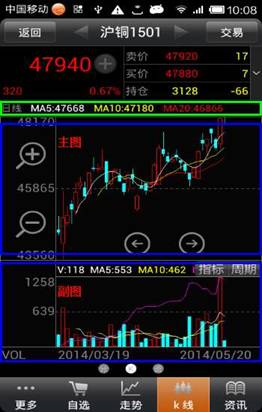 ◇ 點(diǎn)擊“K 線”,即可進(jìn)入 K 線界面