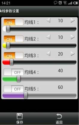 軟件默認(rèn)顯示 3 條 K 均線,最多可支持 5 條均線,設(shè)置完成需點(diǎn)擊“保存”。