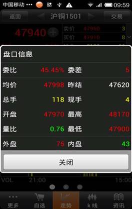 漲跌、漲幅、分量、持倉數(shù)據(jù)。點(diǎn)擊盤口數(shù)據(jù)區(qū)域,十字線消失。